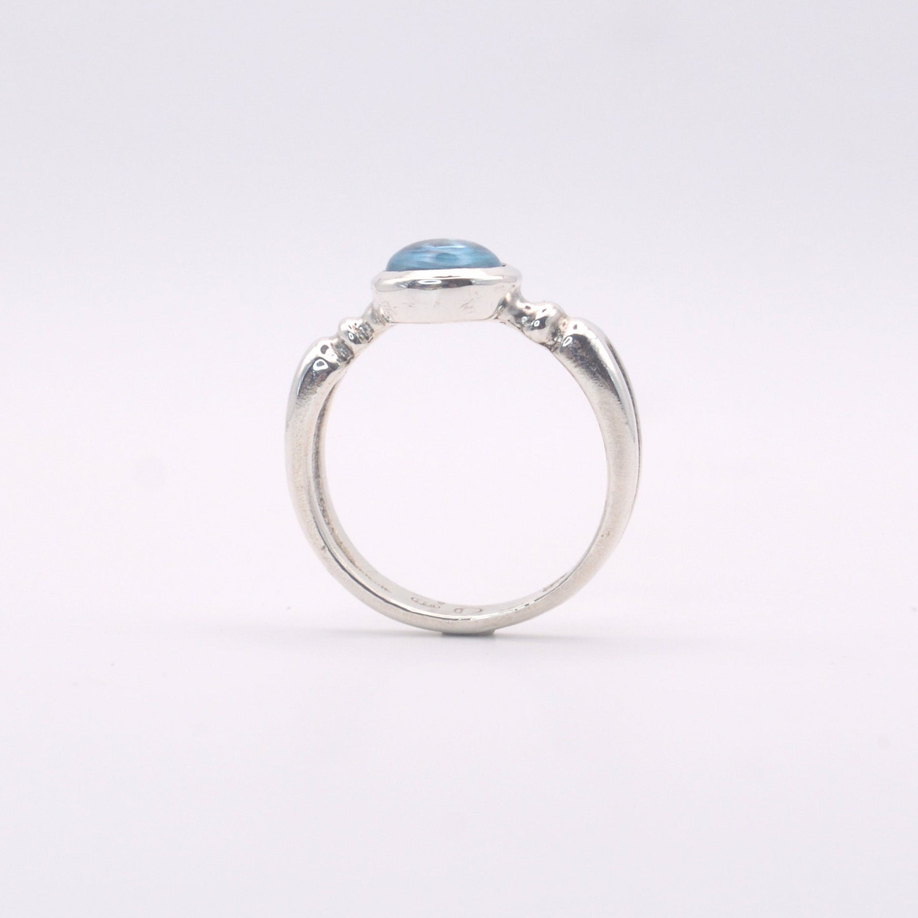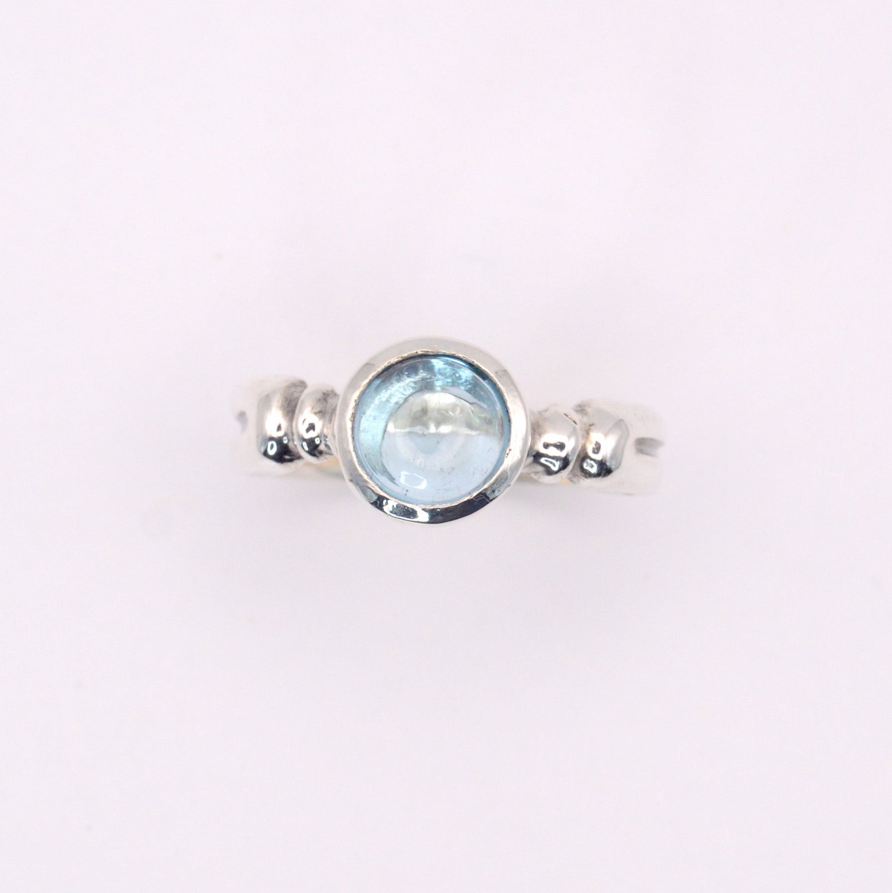 Expertly crafted by hand, the Astrid Ring is a stunning piece of jewellery. Made from solid sterling silver and featuring a sky blue round topaz cabochon, this ring is set in a bezel and shoulder design. Its elegant and unique design is sure to make a statement and elevate any outfit. With a choice in 9ct Gold.