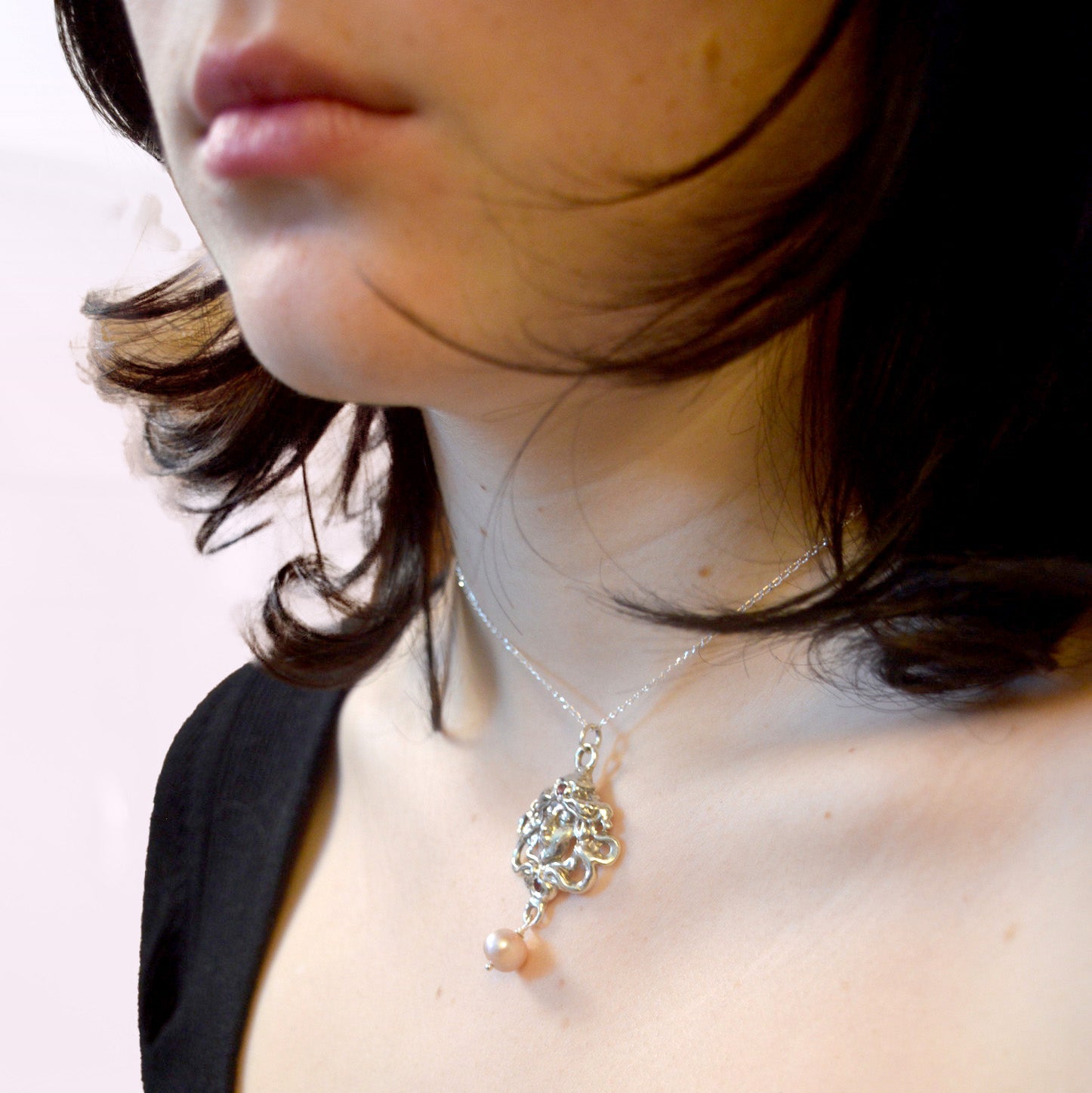Medusa Necklace | Pink Tourmaline & Pearl in Sterling Silver